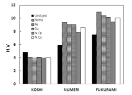 Fig. 2. Primary hand value of silk fabrics dyed with pine needles extract.