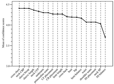 Fig. 5. Mean of confidence scores in rating misfit by body location: CB: center back,